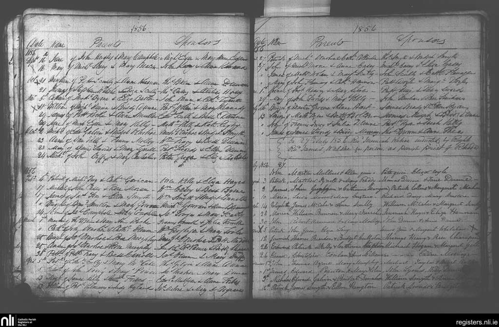 Rhode; County of Offaly; Diocese of Kildare and Leighlin. Baptisms, Sep. 1855 to Nov. 1856