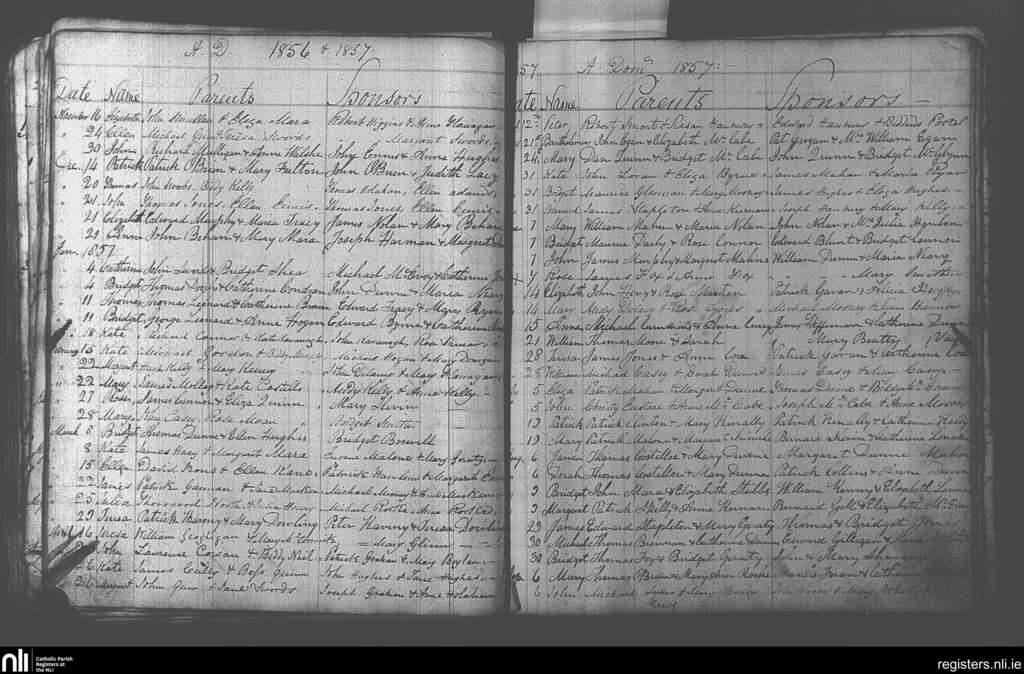 Rhode; County of Offaly; Diocese of Kildare and Leighlin. Baptisms, Nov. 1856 to Sep. 1857