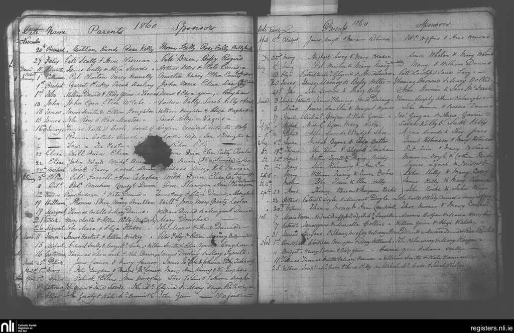 Rhode; County of Offaly; Diocese of Kildare and Leighlin. Baptisms, Nov. 1859 to Nov. 1860