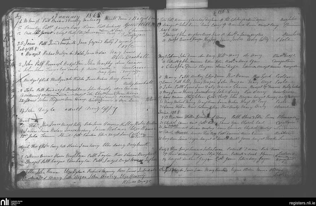 Rhode; County of Offaly; Diocese of Kildare and Leighlin. Baptisms, Jan. 1868 to Aug. 1868
