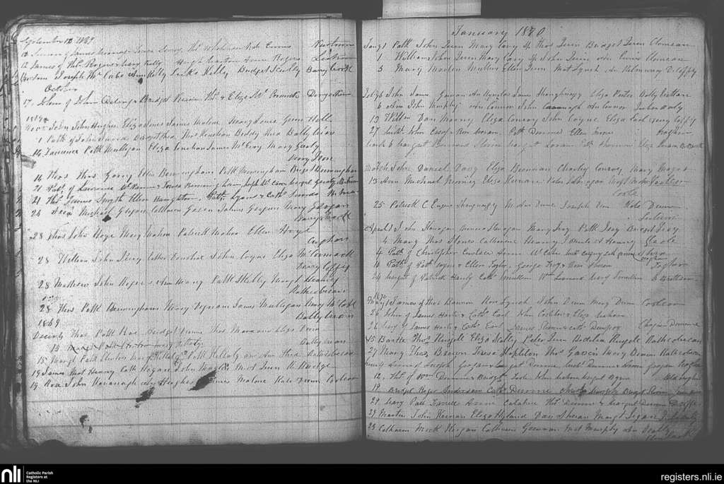 Rhode; County of Offaly; Diocese of Kildare and Leighlin. Baptisms, Sep. 1869 to June 1870
