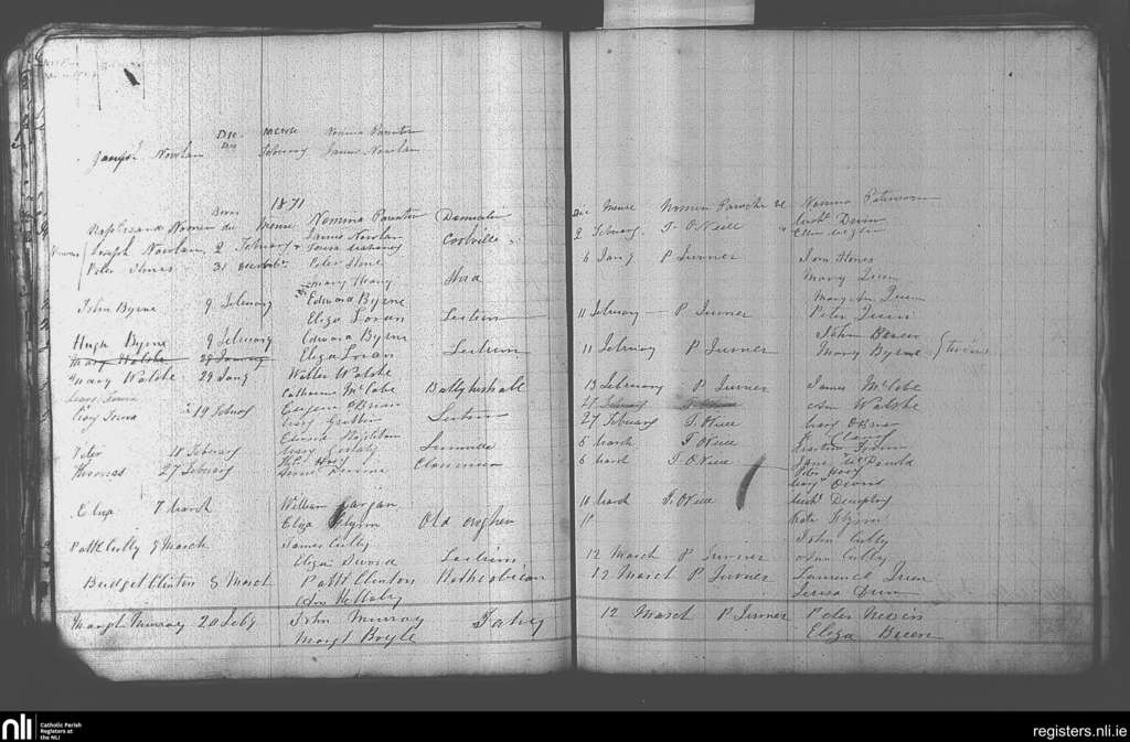 Rhode; County of Offaly; Diocese of Kildare and Leighlin. Baptisms, Jan. 1871 to Mar. 1871