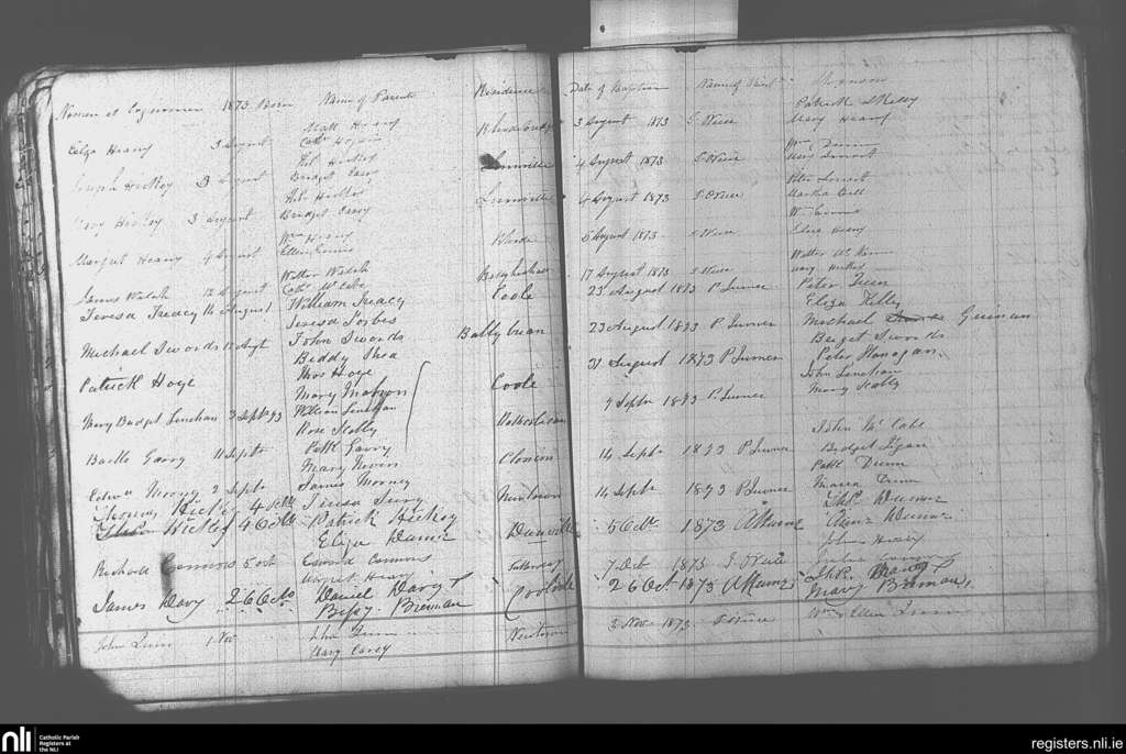 Rhode; County of Offaly; Diocese of Kildare and Leighlin. Baptisms, Aug. 1873 to Nov. 1873