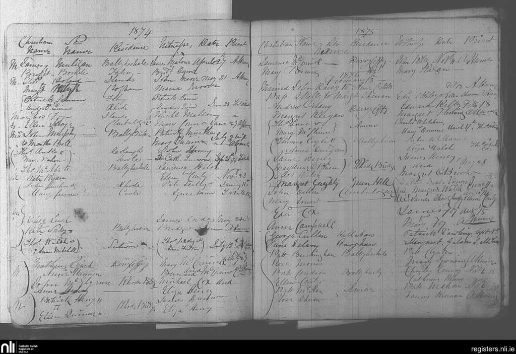 Rhode; County of Offaly; Diocese of Kildare and Leighlin. Marriages, Apr. 1874 to Nov. 1876