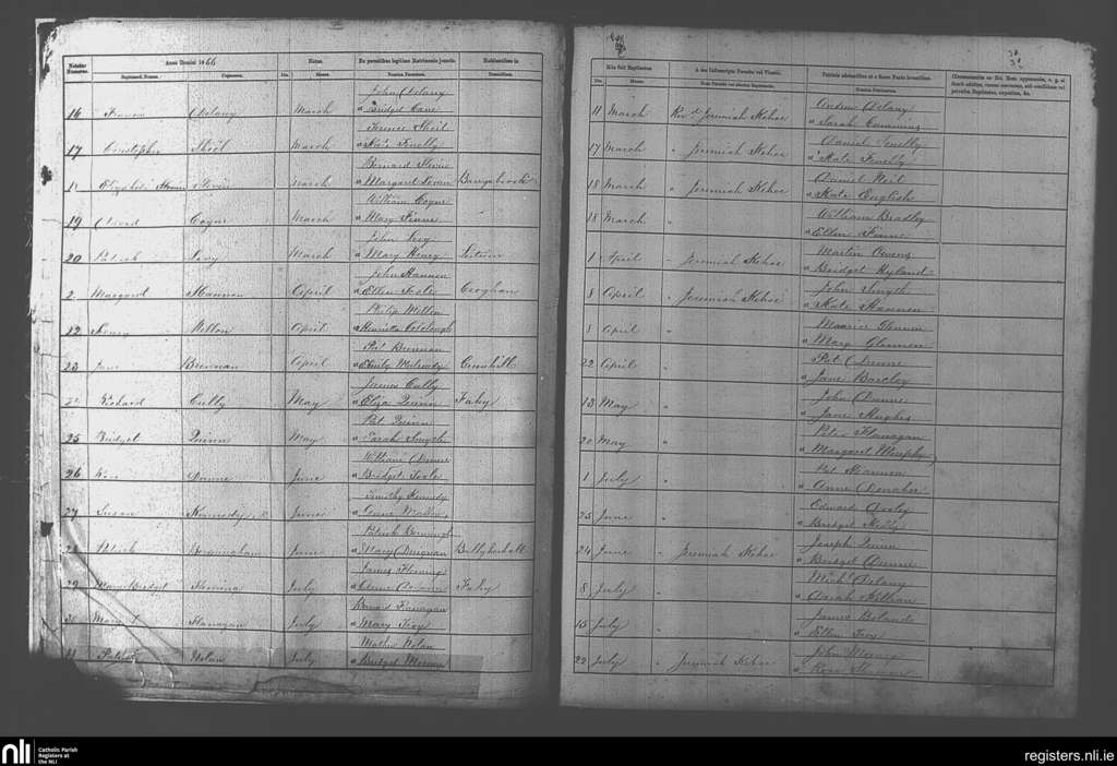 Rhode; County of Offaly; Diocese of Kildare and Leighlin. Baptisms, Mar. 1866 to July 1866