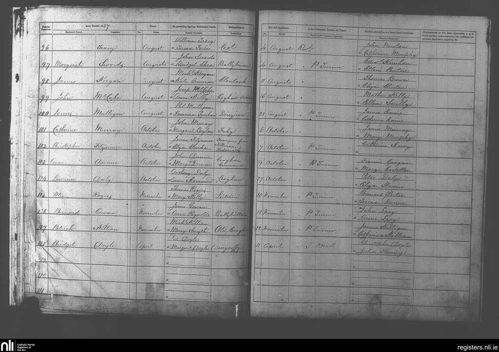 Rhode; County of Offaly; Diocese of Kildare and Leighlin. Baptisms, Apr. 1867 to Nov. 1867