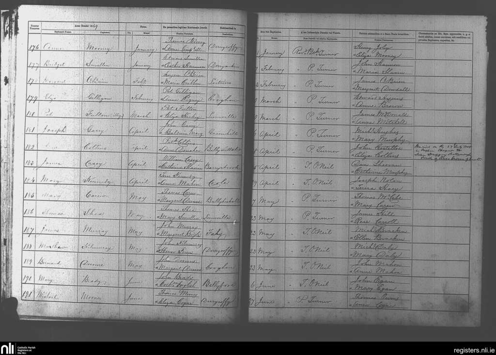 Rhode; County of Offaly; Diocese of Kildare and Leighlin. Baptisms, Jan. 1869 to June 1869