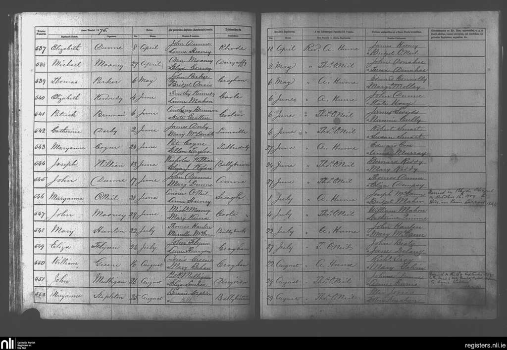 Rhode; County of Offaly; Diocese of Kildare and Leighlin. Baptisms, Apr. 1875 to Aug. 1875