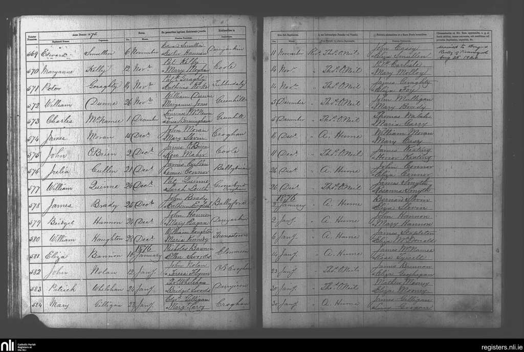 Rhode; County of Offaly; Diocese of Kildare and Leighlin. Baptisms, Nov. 1875 to Jan. 1876