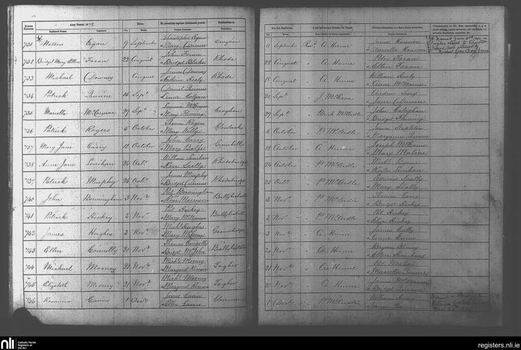 Rhode; County of Offaly; Diocese of Kildare and Leighlin. Baptisms, Aug. 1878 to Dec. 1878