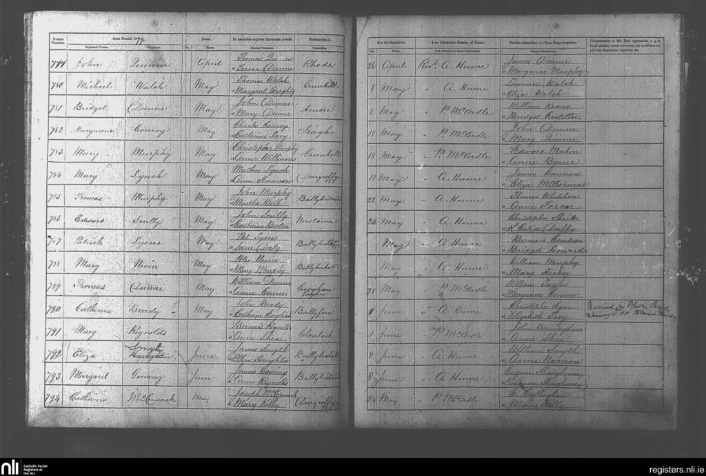 Rhode; County of Offaly; Diocese of Kildare and Leighlin. Baptisms, Apr. 1879 to June 1879