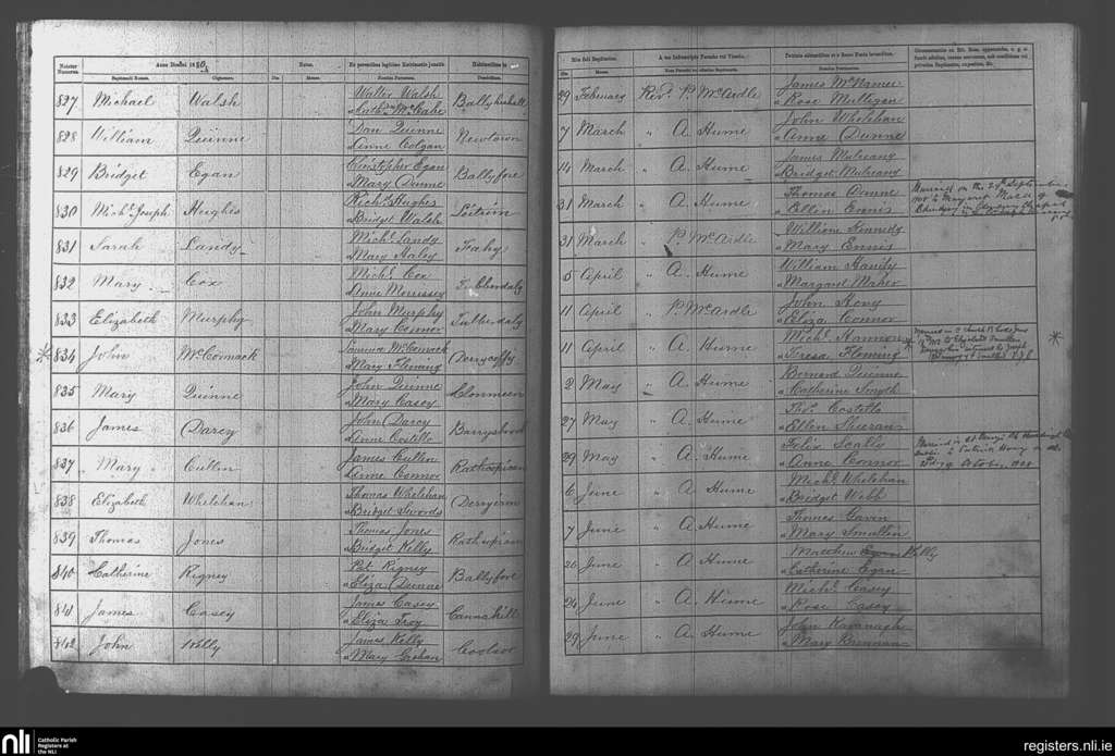 Rhode; County of Offaly; Diocese of Kildare and Leighlin. Baptisms, Feb. 1880 to June 1880