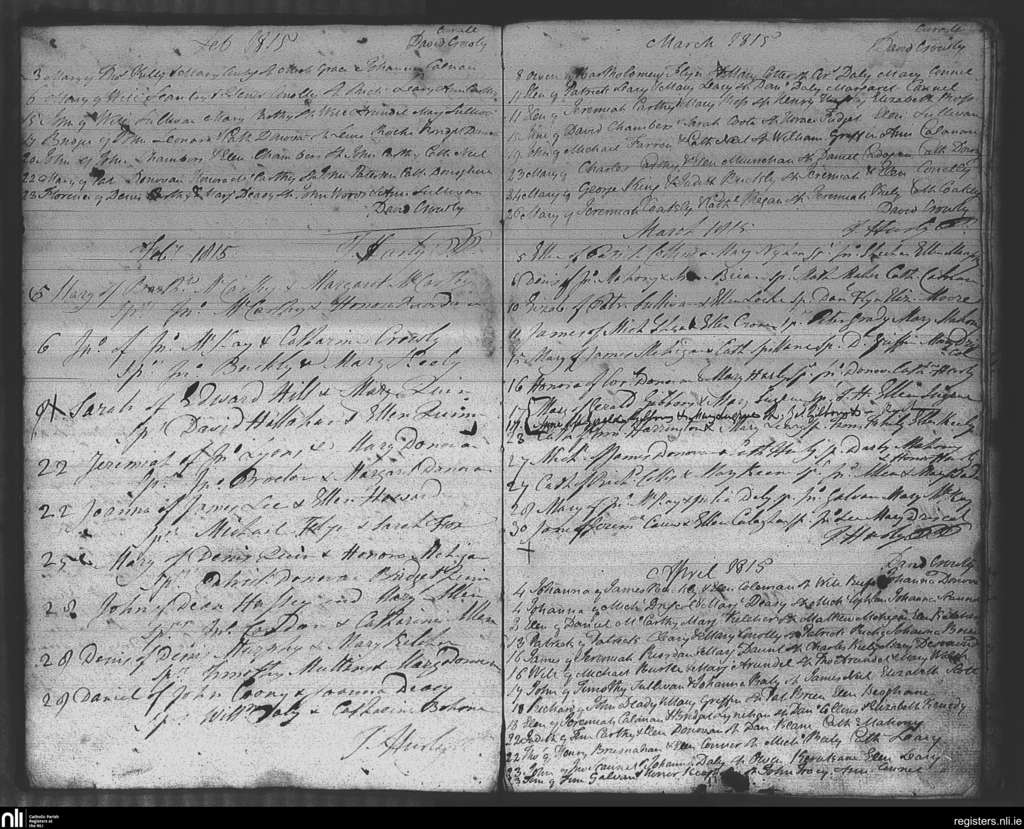 Kinsale; County of Cork; Diocese of Cork and Ross. Baptisms, Feb. 1815 to Apr. 1815