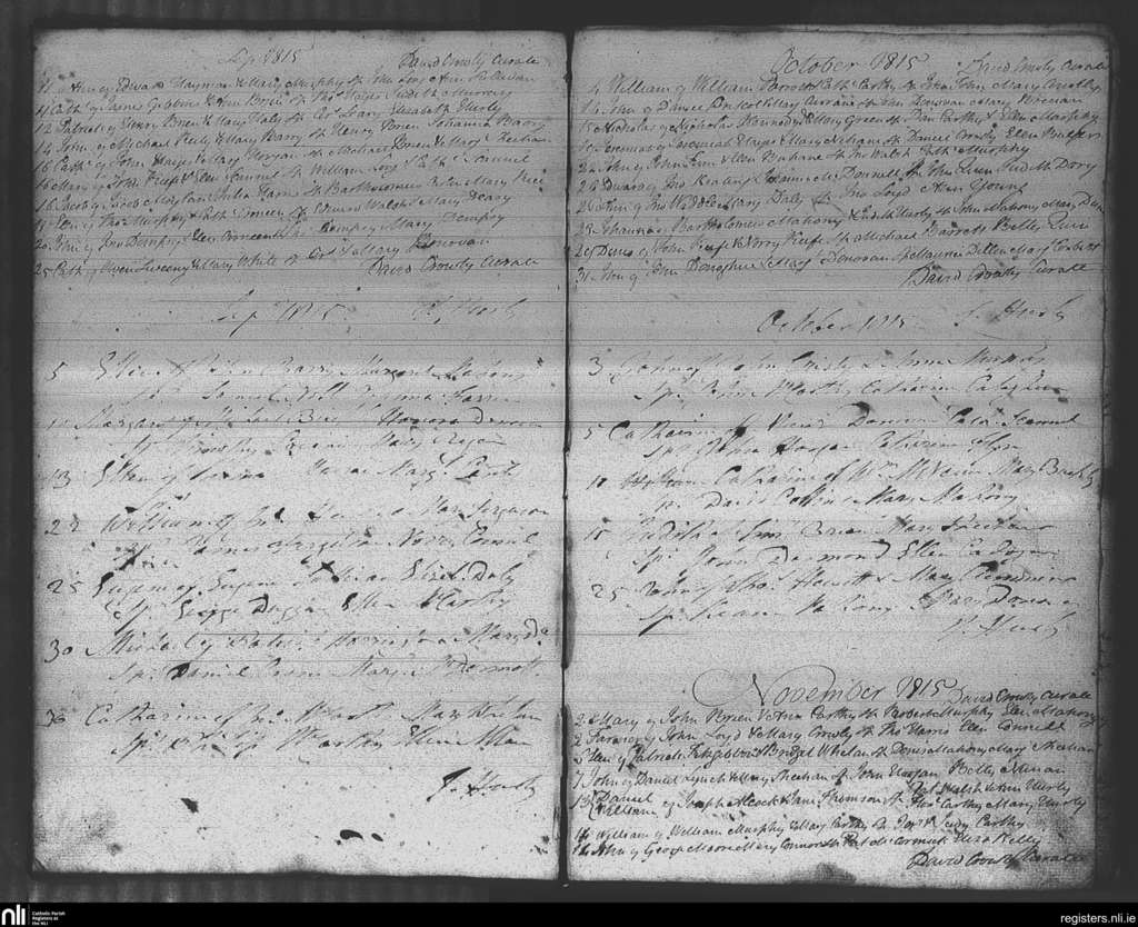 Kinsale; County of Cork; Diocese of Cork and Ross. Baptisms, Sep. 1815 to Nov. 1815