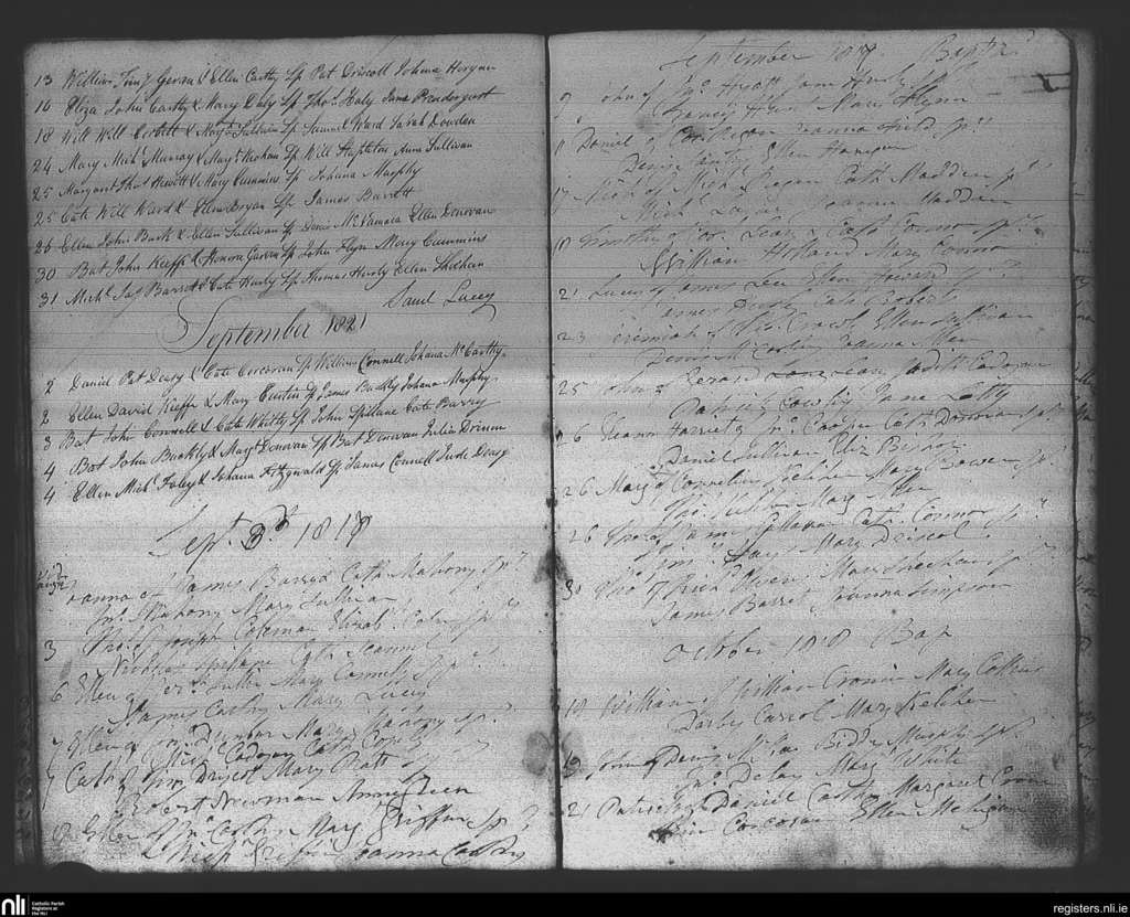 Kinsale; County of Cork; Diocese of Cork and Ross. Baptisms, Sep. 1817 to Sep. 1821
