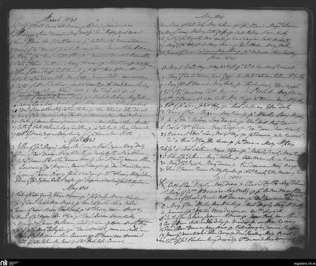 Kinsale; County of Cork; Diocese of Cork and Ross. Baptisms, Mar. 1821 to July 1821