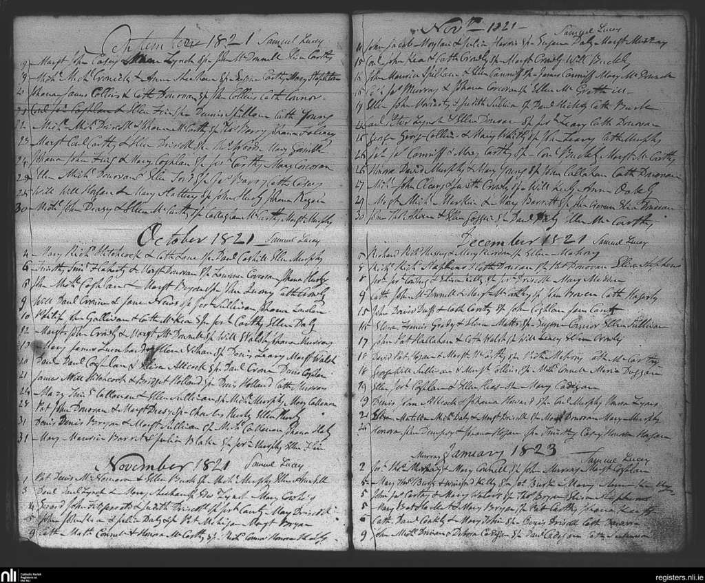 Kinsale; County of Cork; Diocese of Cork and Ross. Baptisms, Sep. 1821 to Jan. 1823