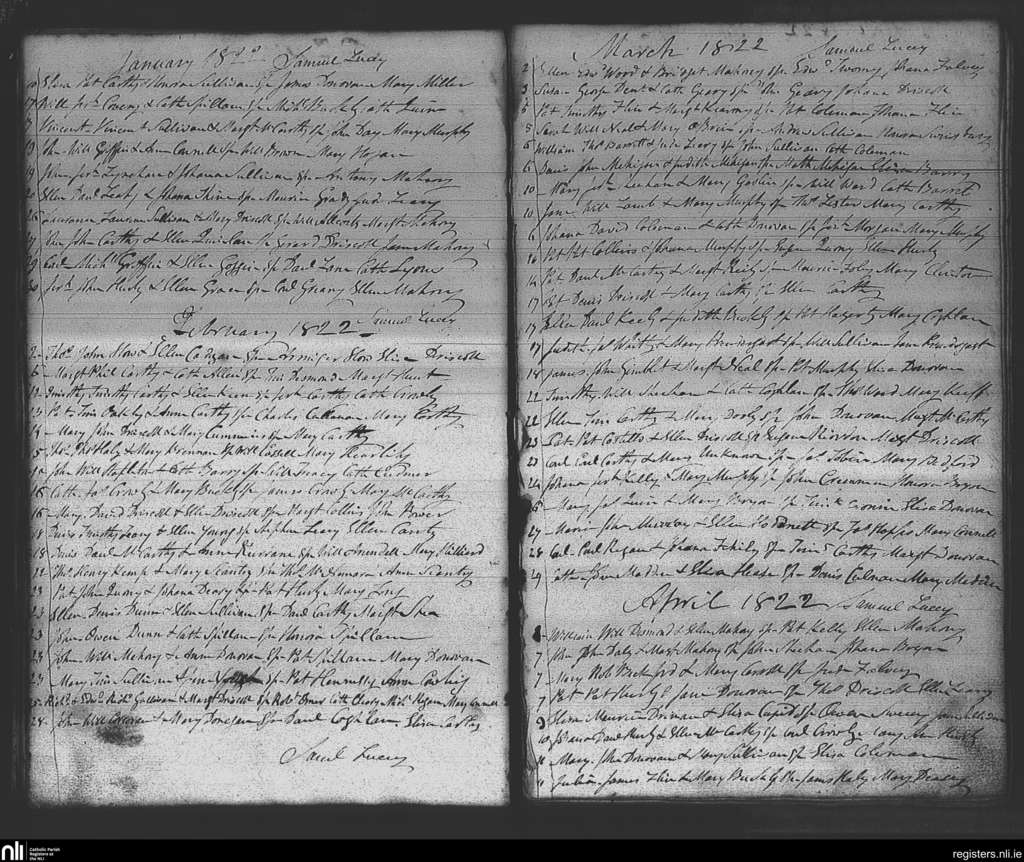 Kinsale; County of Cork; Diocese of Cork and Ross. Baptisms, Jan. 1822 to Apr. 1822