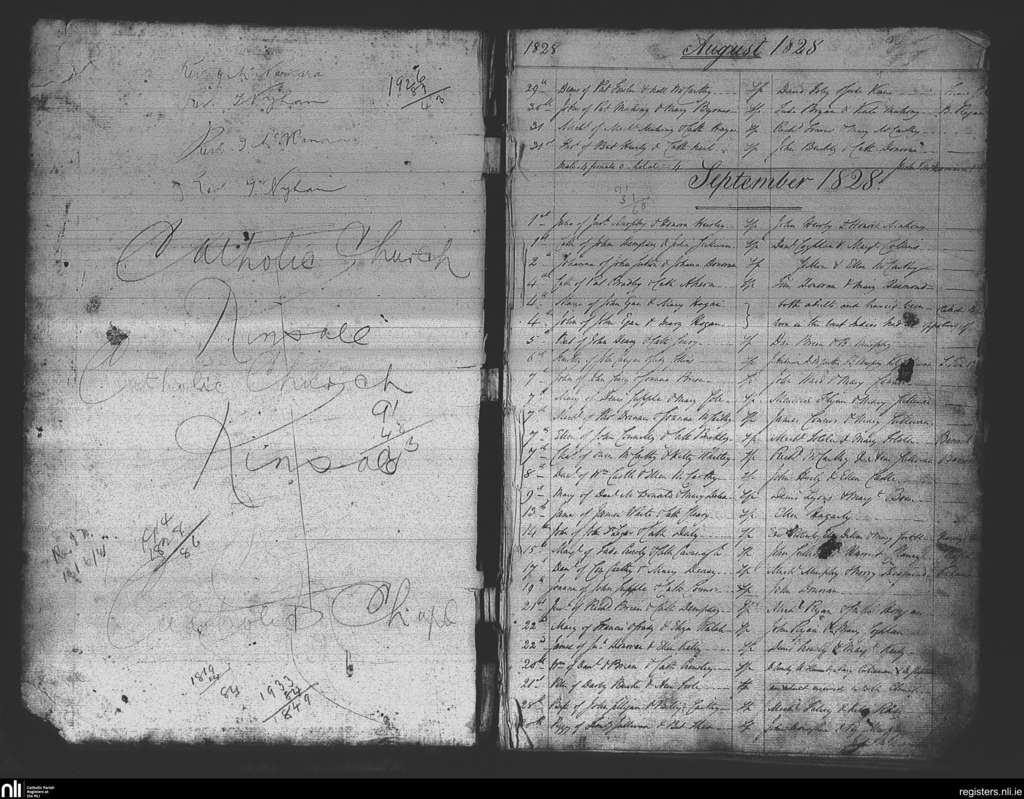 Kinsale; County of Cork; Diocese of Cork and Ross. Baptisms, Aug. 1828 to Sep. 1828