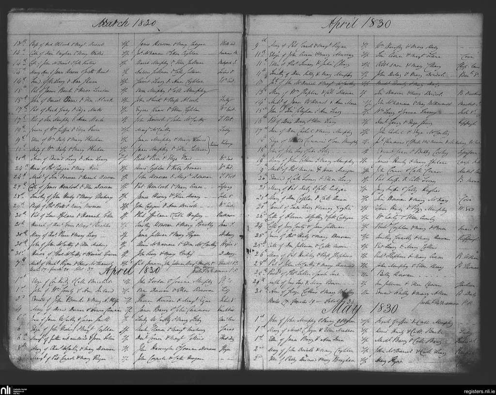 Kinsale; County of Cork; Diocese of Cork and Ross. Baptisms, Mar. 1830 to May 1830