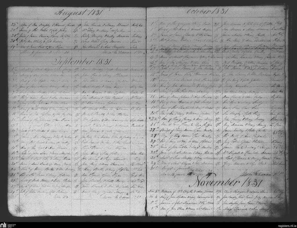 Kinsale; County of Cork; Diocese of Cork and Ross. Baptisms, Aug. 1831 to Nov. 1831