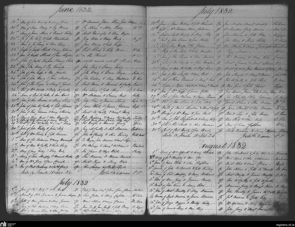 Kinsale; County of Cork; Diocese of Cork and Ross. Baptisms, June 1832 to Aug. 1832