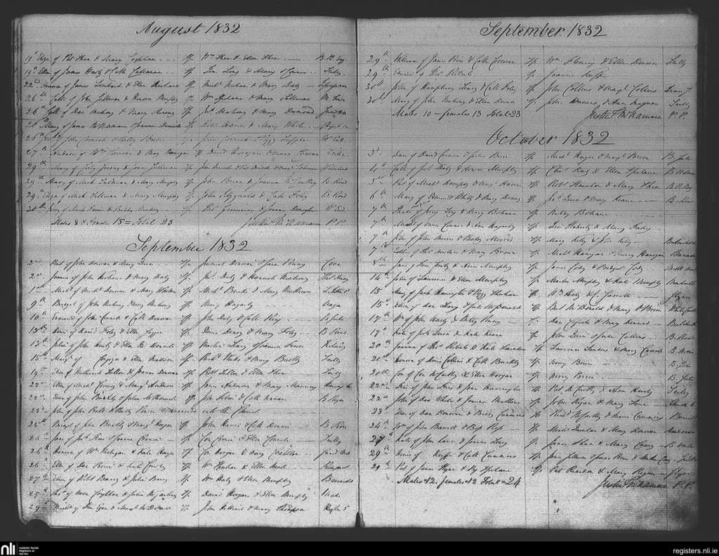 Kinsale; County of Cork; Diocese of Cork and Ross. Baptisms, Aug. 1832 to Oct. 1832