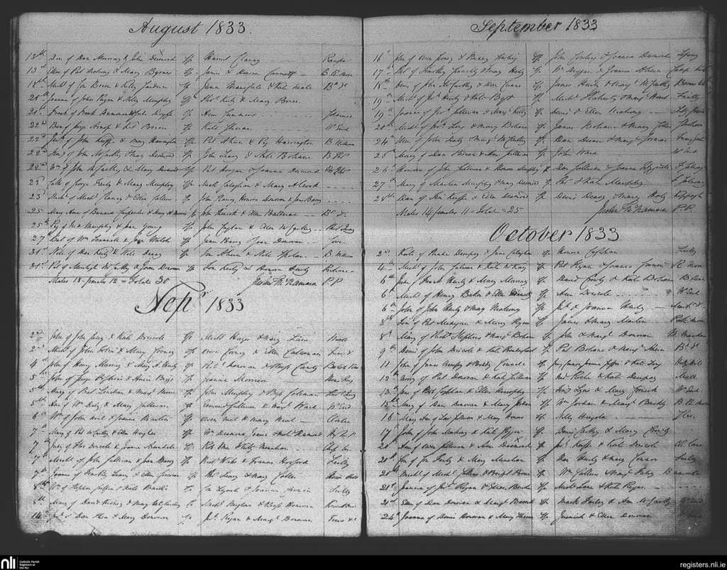 Kinsale; County of Cork; Diocese of Cork and Ross. Baptisms, Aug. 1833 to Oct. 1833