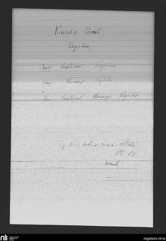 Kinsale; County of Cork; Diocese of Cork and Ross. Marriages