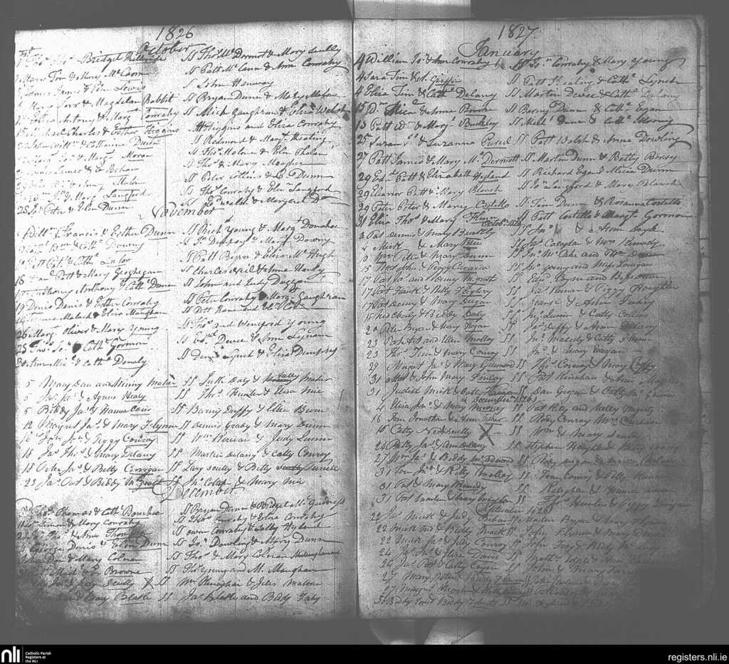 Rosenallis; County of Laois; Diocese of Kildare and Leighlin. Baptisms, Oct. 1826 to Jan. 1827