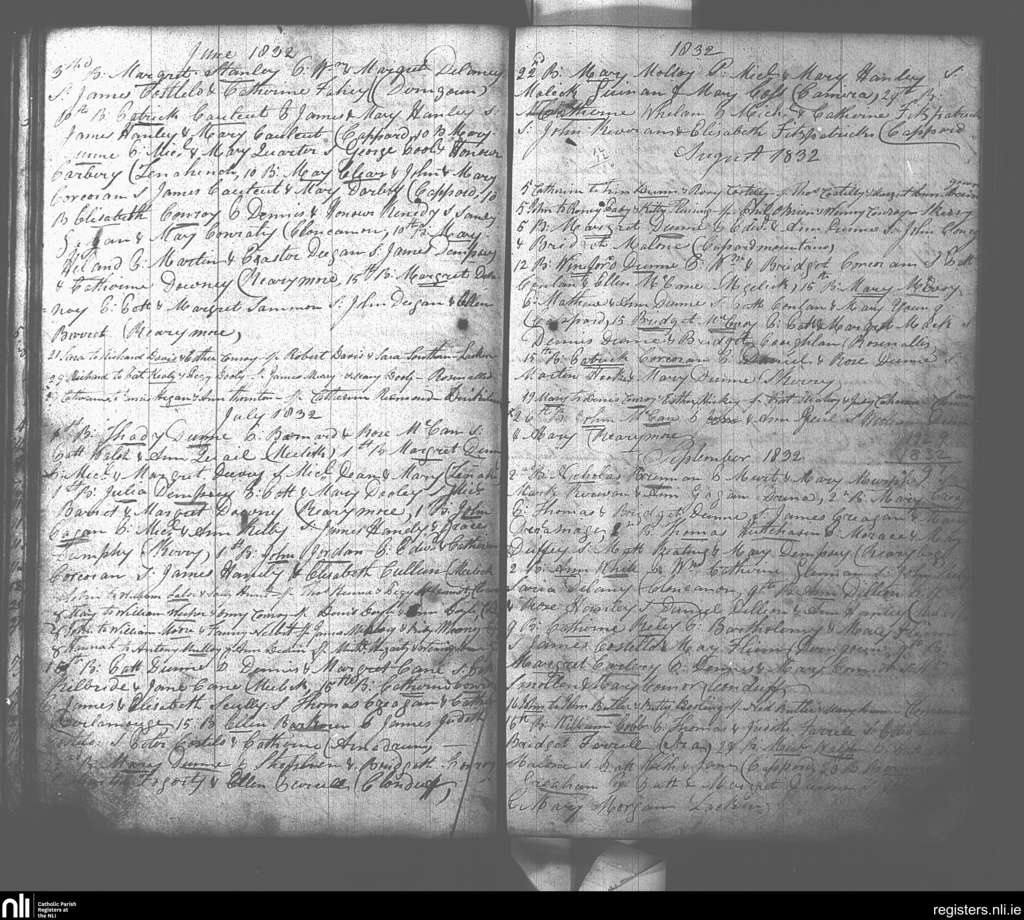 Rosenallis; County of Laois; Diocese of Kildare and Leighlin. Baptisms, June 1832 to Sep. 1832