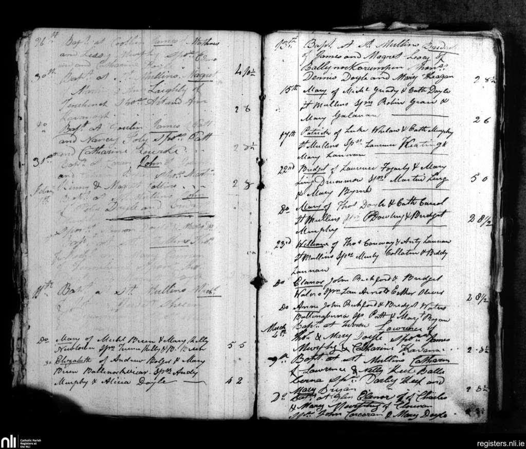St. Mullins; County of Wexford, Carlow; Diocese of Kildare and Leighlin. Baptisms, Jan. 1825 to Mar. 1825