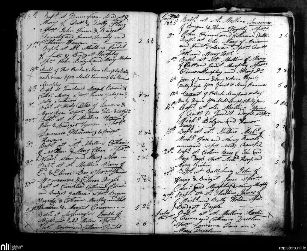St. Mullins; County of Wexford, Carlow; Diocese of Kildare and Leighlin. Baptisms, May 1825 to July 1825