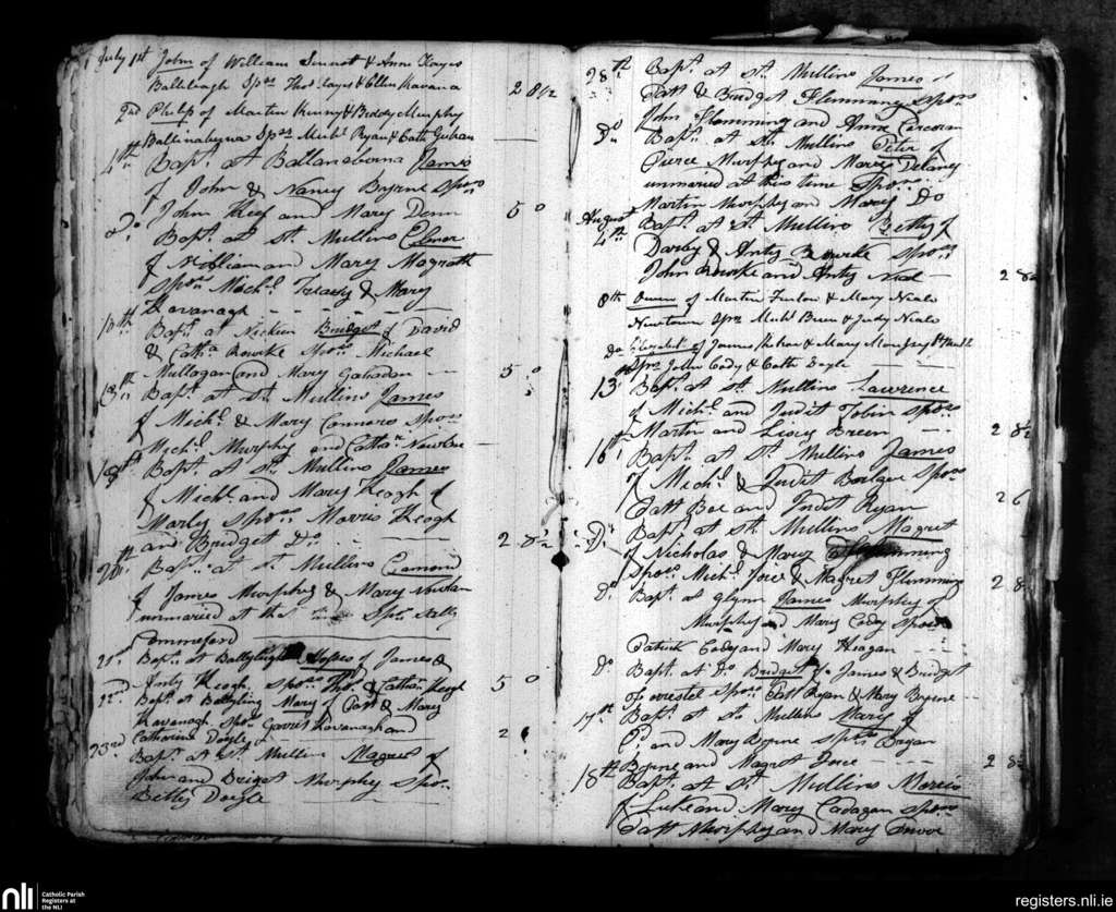 St. Mullins; County of Wexford, Carlow; Diocese of Kildare and Leighlin. Baptisms, July 1825 to Aug. 1825