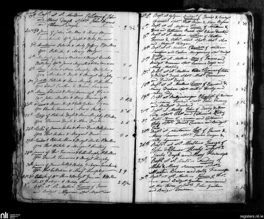 St. Mullins; County of Wexford, Carlow; Diocese of Kildare and Leighlin. Baptisms, Aug. 1825 to Oct. 1825