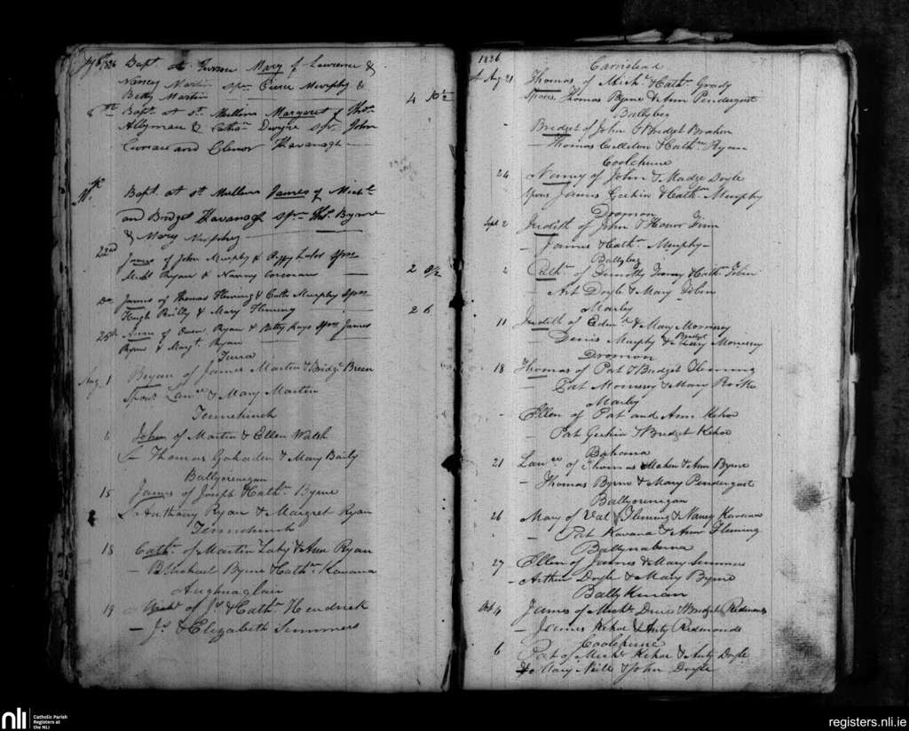 St. Mullins; County of Wexford, Carlow; Diocese of Kildare and Leighlin. Baptisms, July 1826 to Oct. 1826