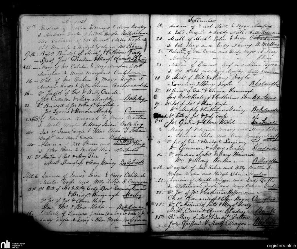 St. Mullins; County of Carlow, Wexford; Diocese of Kildare and Leighlin. Baptisms, Aug. 1835 to Oct. 1835