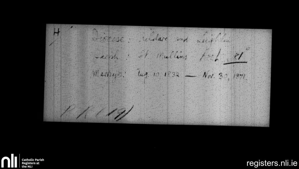 St. Mullins; County of Carlow, Wexford; Diocese of Kildare and Leighlin. Marriages