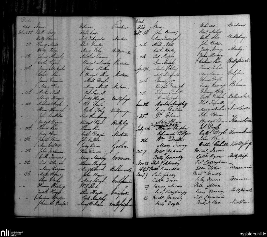 St. Mullins; County of Carlow, Wexford; Diocese of Kildare and Leighlin. Marriages, Feb. 1844 to Jan. 1845