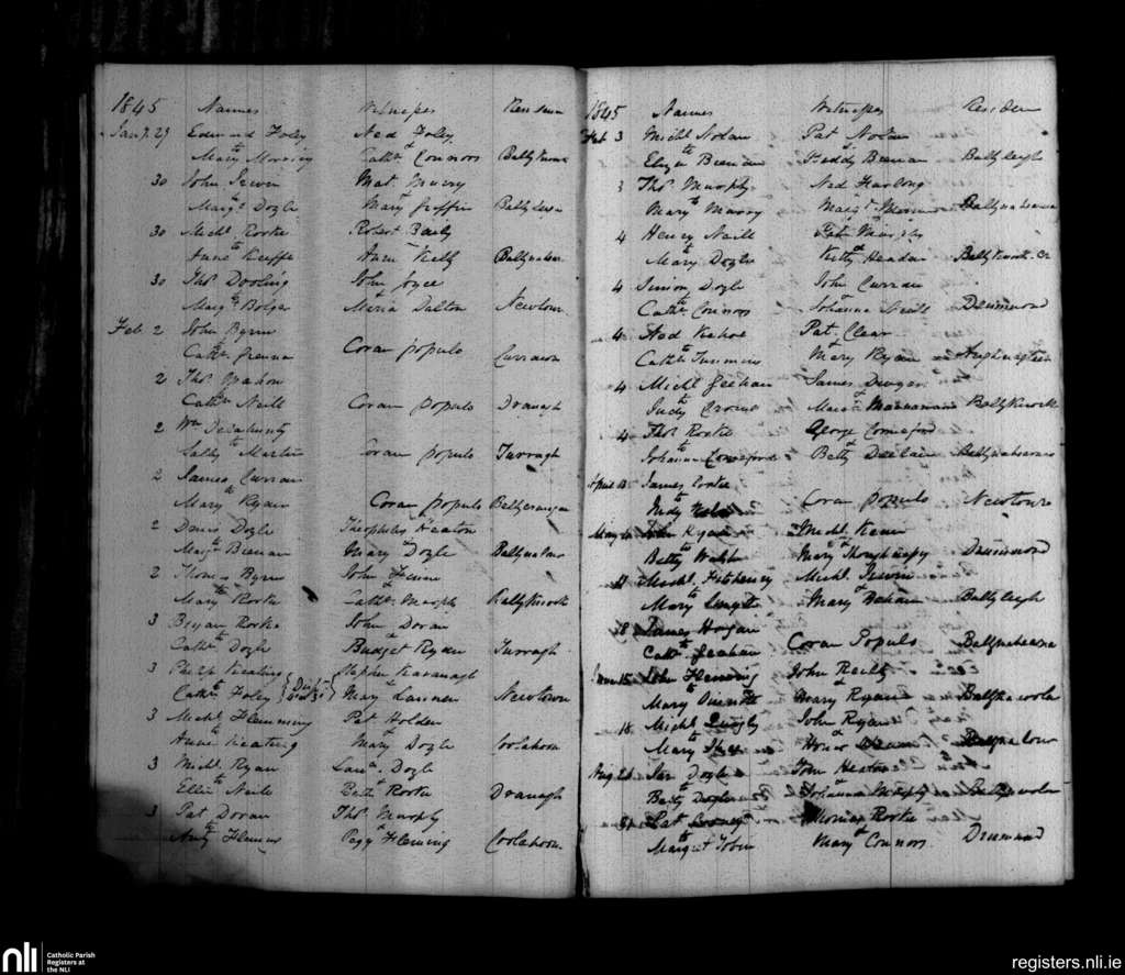 St. Mullins; County of Carlow, Wexford; Diocese of Kildare and Leighlin. Marriages, Jan. 1845 to Aug. 1845