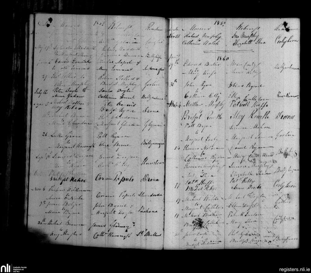 St. Mullins; County of Carlow, Wexford; Diocese of Kildare and Leighlin. Marriages, Apr. 1859 to Feb. 1860