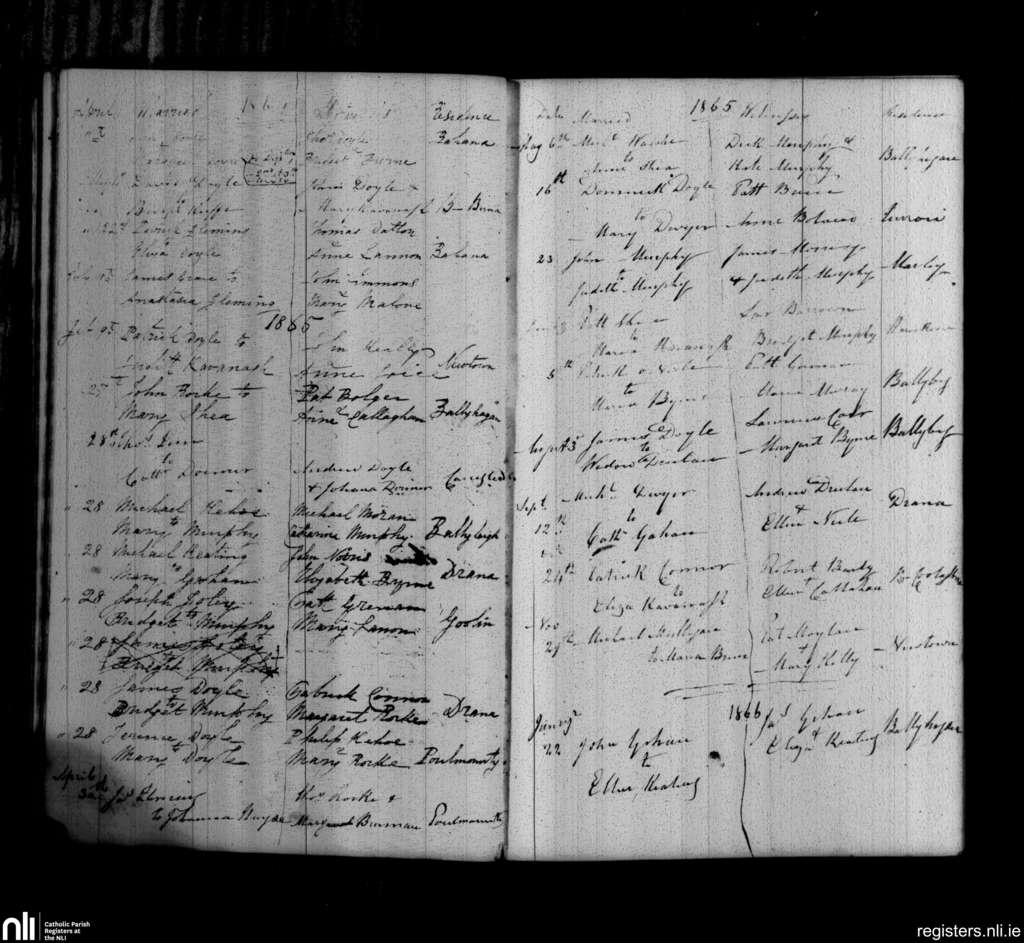St. Mullins; County of Carlow, Wexford; Diocese of Kildare and Leighlin. Marriages, Apr. 1864 to Jan. 1866