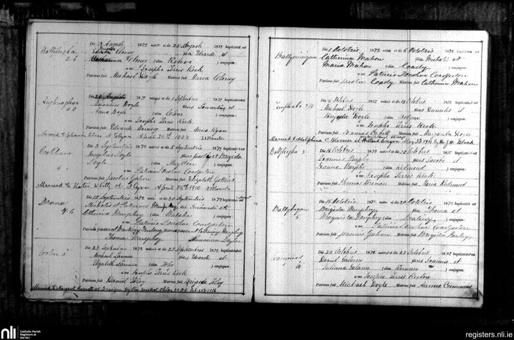 St. Mullins; County of Carlow, Wexford; Diocese of Kildare and Leighlin. Baptisms, Aug. 1872 to Oct. 1872