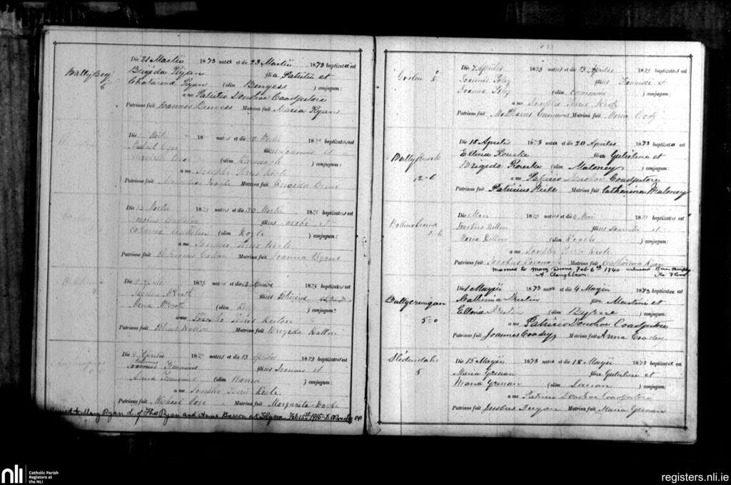St. Mullins; County of Carlow, Wexford; Diocese of Kildare and Leighlin. Baptisms, Mar. 1873 to May 1873