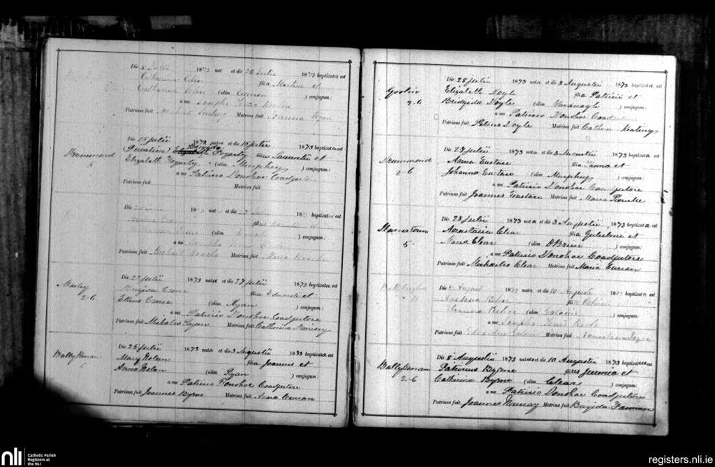 St. Mullins; County of Carlow, Wexford; Diocese of Kildare and Leighlin. Baptisms, July 1873 to Aug. 1873
