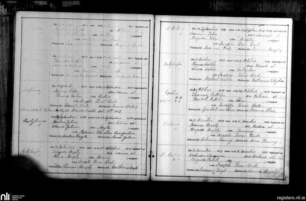 St. Mullins; County of Carlow, Wexford; Diocese of Kildare and Leighlin. Baptisms, Aug. 1873 to Nov. 1873