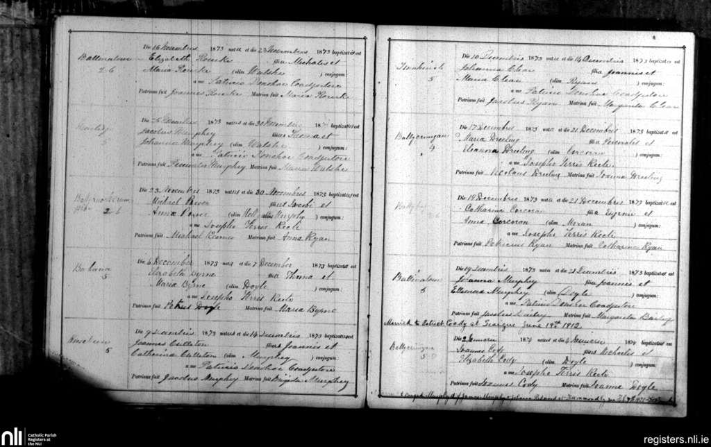 St. Mullins; County of Carlow, Wexford; Diocese of Kildare and Leighlin. Baptisms, Nov. 1873 to Jan. 1874