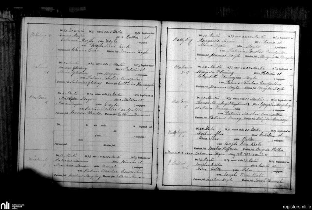 St. Mullins; County of Carlow, Wexford; Diocese of Kildare and Leighlin. Baptisms, Mar. 1874