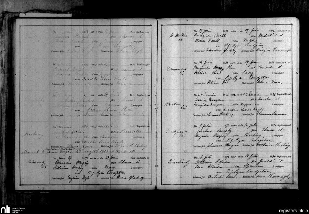 St. Mullins; County of Carlow, Wexford; Diocese of Kildare and Leighlin. Baptisms, June 1876 to July 1876