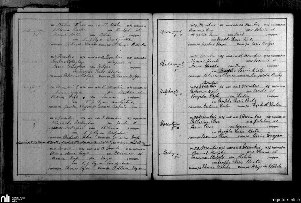 St. Mullins; County of Carlow, Wexford; Diocese of Kildare and Leighlin. Baptisms, Oct. 1876 to Dec. 1876